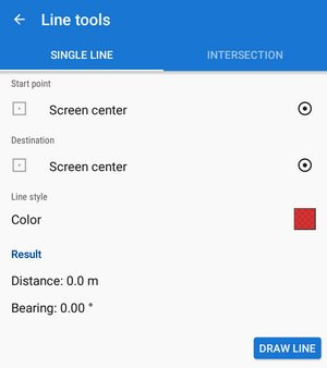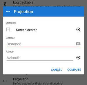 Calculates a new point from its distance and azimuth from your location and draws it on the map. This function is available also in Location selector.