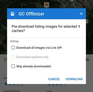 Geocaching offlinizer is an abbreviation of a more accurate Geocaching image offlinizer. The feature is not among other geocaching tools. Still, it can be found in a Geocache detail panel under context menu or, in case of selecting more caches, in the tools menu of the Library. To make it work, follow these instructions: