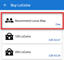 LoCoins can be acquired as a reward for recommending Locus Map to other people - your family, friends etc. You can get 10 or 25 LoCoins per one successful Locus installation (Locus Map Free, resp. Locus Map Pro). Number of recommended installations in unlimited.
