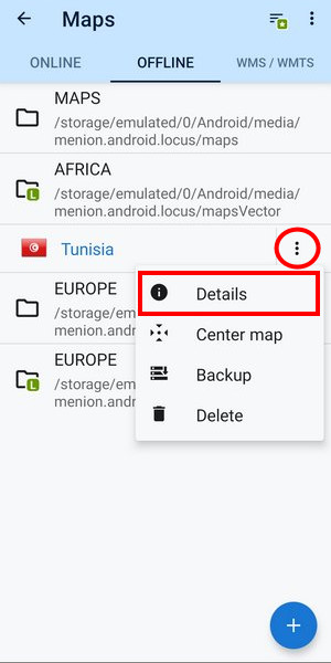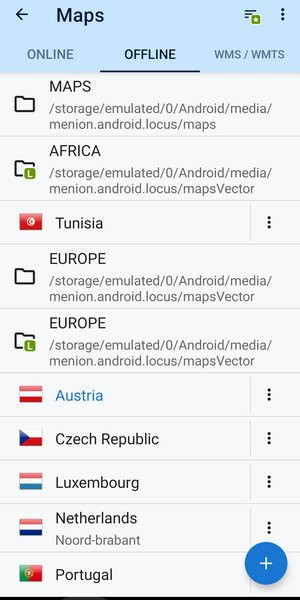 Purchased maps appear in Offline maps tab of your Map Manager in folders sorted by country.