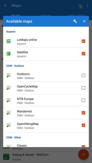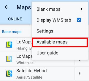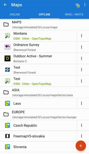 Locus Map can work with many maps of various kinds. With the Map Manager, you can control which maps are available within the app, which maps are active (i.e., visible on the main screen), and which online maps to download for offline use.