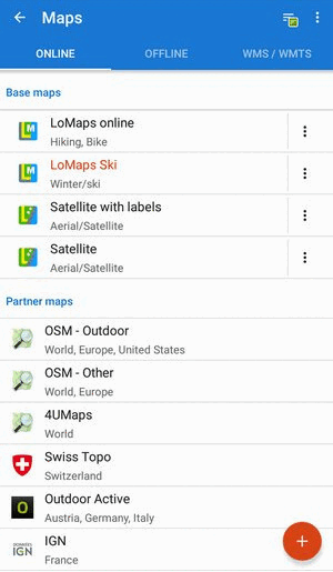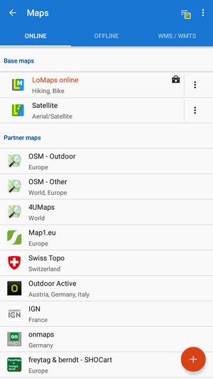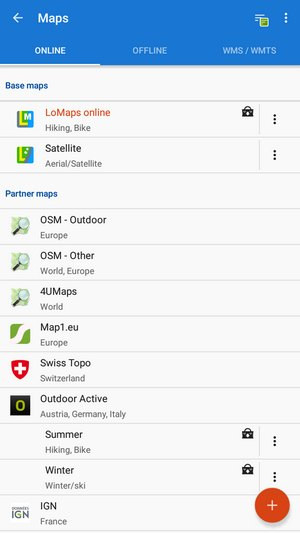 This tab contains all available maps that don't need an internet connection for display. At the first start of the app, the tab is empty. The maps can be obtained from three sources: