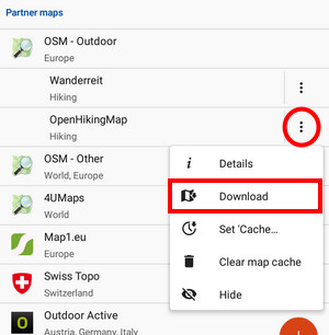 Some online maps can also be downloaded for offline use. The download button can be found in each map's