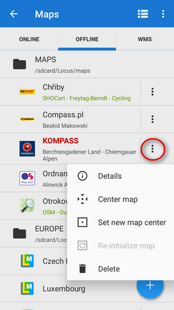 • Re-initialize map - tap in case your map obtained outside of Locus Map is wrongly displayed. The feature re-calibrates the map.