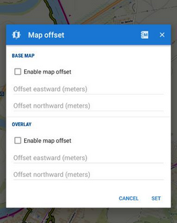 For most of you this function will remain unused but there are some countries that corrupt their public maps for whatever reasons, military etc. by offsetting them in unknown directions. There are also some of you who have incorrectly calibrated their map and want to move it temporarily on the correct place. To correct such maps locally there is the offset function that enables to shift the map on two axes.
