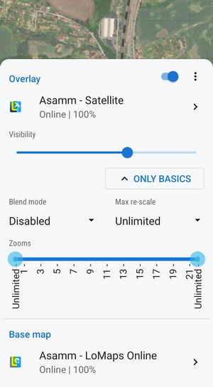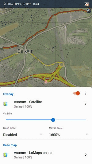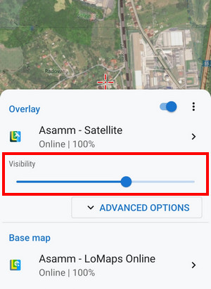 This feature enables laying two maps over each other in a semi-transparent mode so that it is possible to compare their details, coverage, accuracy etc. or two maps can complement each other.