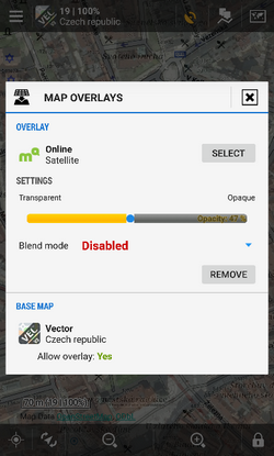 • Select the overlay map - online or offline - the same formats as for the base map are supported.