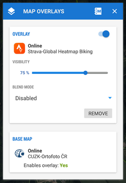 This feature enables laying two maps over each other in a semi-transparent mode so that it is possible to compare their details, coverage, accuracy etc. or two maps can complement each other.