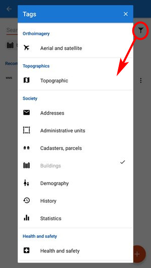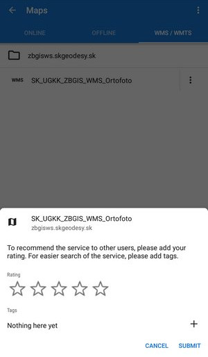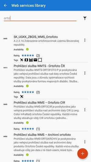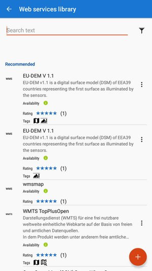 By default, the WMS/WMTS tab is empty. If you want to use a service you have to add it first. Locus Map offers a library of worldwide WMS sources where you can select a service for adding to the app.