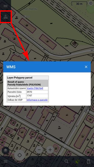 After a WMS map is activated two new control buttons appear in the upper left corner: