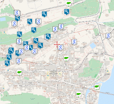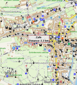 The other category of points is an integral part of LoMaps. LoPoints are combined output of the OpenStreetMap database and Wikipedia and carry a lot of information about almost all point objects on the map, beginning with hill peaks, church monuments, and other landmarks and ending with civil facilities like post offices, ATMs, gas stations, etc. LoPoints can not be created, deleted, renamed or otherwise manipulated but you can be guided or navigated to them, you can share them, copy them, etc.