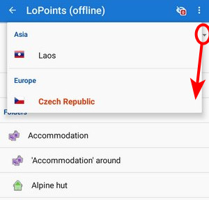 You can browse offline LoPoints by categories, select a category and highlight it on the map.