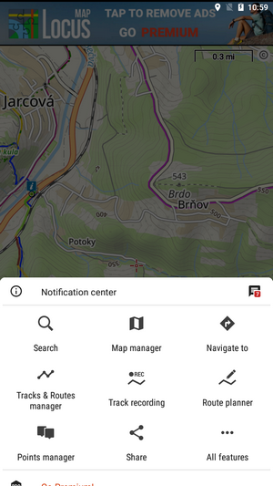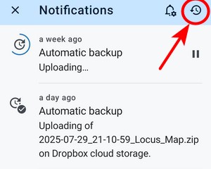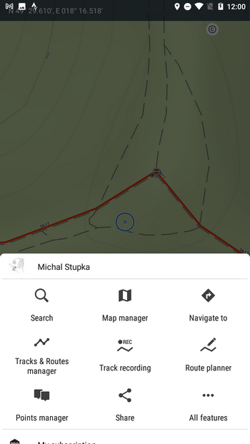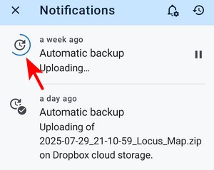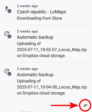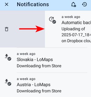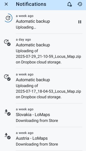 Here the app informs about ongoing processes - downloading maps, elevation data, backups…