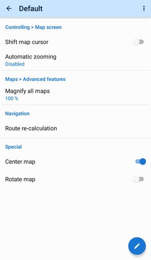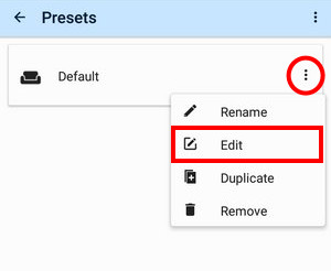 A newly installed Locus Map contains just one preset called Default. To display its contents, tap Edit from the action menu: