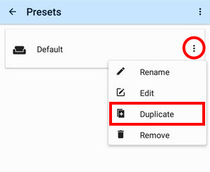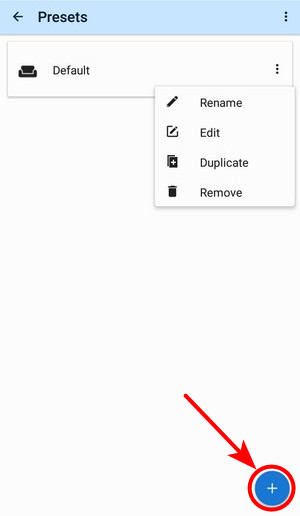 If you want to add more settings options to the preset tap