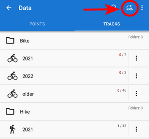 Tracks, routes and points can be synchronized across many devices through our cloud sync service. This is done automatically always after any change made to the database - when a track is recorded, route planned, a point imported… The sync unifies the database content with all other devices.