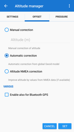 • Automatic correction - method used in most cases - Locus Map can compute offset of the whole world from a Geoid model. This method is accurate enough for use in mobile phones and sufficiently precise for all locations (the offset slightly varies based on location). This method is available in Locus Map Pro only