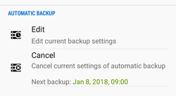When the automatic backup is enabled the menu in the entry dialog offers option to edit its properties or cancel it: