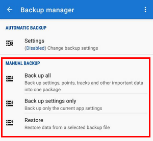 We strongly recommend backing up your Locus data - settings, points, and tracks. This tool enables the definition of periodic automatic backups and triggers one-time backups.
