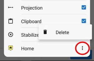 The grid can be modified - icons can be long-tapped and dragged to change position or removed, and a new customized location point can be added, see Location Selector Setup below.