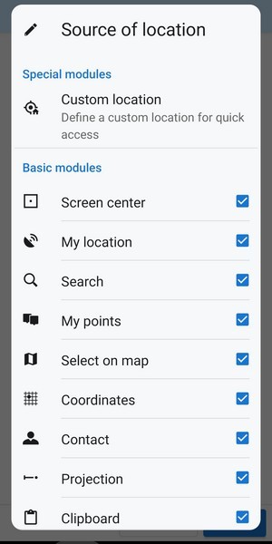 Location Selector is a very important part of Locus Map. Over 20 activities link to it to define locations of points, map centers, search spots and so on. It is always triggered in a particular situation by