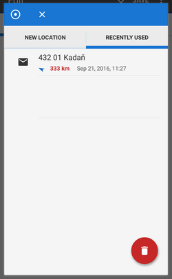 Tab contains last used or selected locations. The points are listed according to time of use, the newest is at the top.
