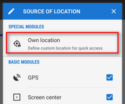 Location Selector is a very important part of Locus Map. Over 20 activities link to it to define locations of points, map centers, search spots and so on. It is always triggered in a particular situation by