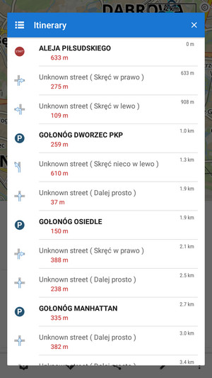 Tapping the button opens a selection dialog where you can start navigation or guidance along the route.