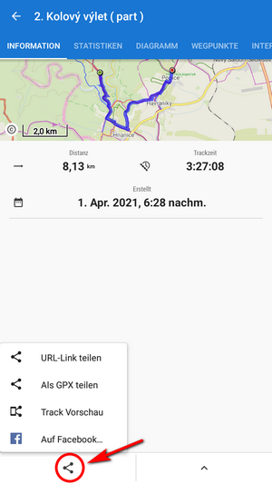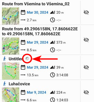 Each track or route consists of track- or route points. Tapping the icon in the corner opens the detail screen with information about the particular point: