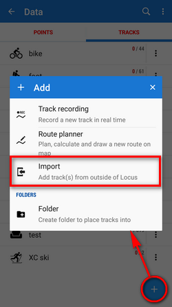 Tracks import is used when you want to work with tracks from outside of Locus - websites, apps, add-ons etc. Either you choose the data yourselves or Locus Map receives them.