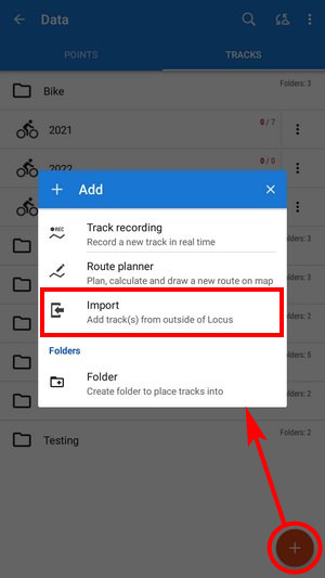 Import is used when you want to work with tracks or routes from outside of Locus - websites, apps, add-ons etc. Either you choose the data yourselves or Locus Map receives them.