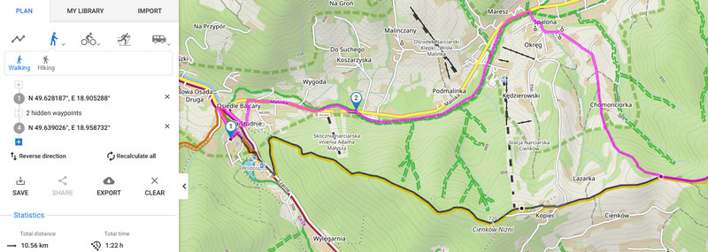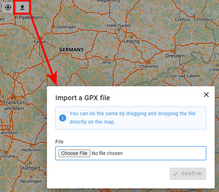 The web map is able to import only a GPX file containing tracks, routes, points or all at once.
