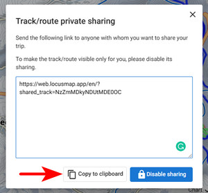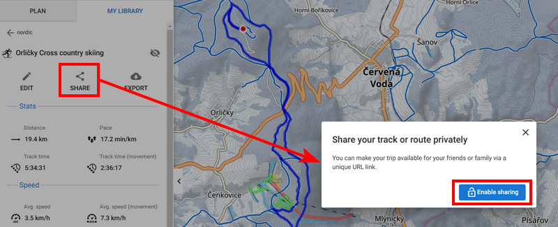 Tracks and routes saved in your library are not public. Before sharing a unique link to one of them, you must enable sharing: