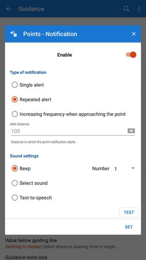Guidance in Locus Map can be further configured in Menu > Settings > Guidance.