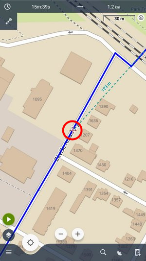 Locus can zoom the map automatically according to the distance from the point you are guided to - the closer the target is the bigger zoom is displayed so both your position and the target are visible on the map screen: