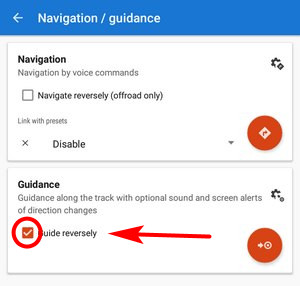To be navigated in reverse direction of the route, check “Guide reversely”: