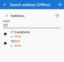 Locus uses Android default Google address search but also GraphHopper and Bing databases are available. Also, online LoPoints are searched.