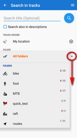 By default this search returns the nearest routes/tracks passing by your current position - just tap