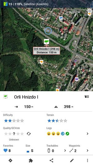 The imported geocaches are stored in a selected folder of the point manager or displayed on the map. After tapping a geocache in both a panel with its detailed info slides up.