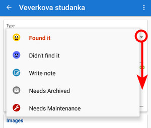 A folder with geocaches looks and offers the same controls as an ordinary point folder except a few more options: