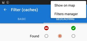 Basic GC filtering - you can filter geocaches by name, GC code, icon (type), date and distance:
