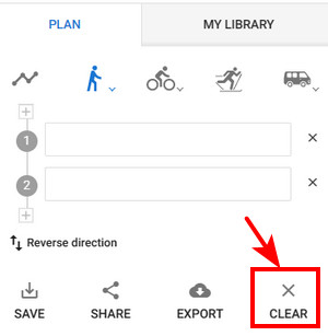 To delete the whole route from the planner, tap Clear: