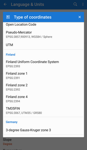 More advanced users like surveyors or explorers who want to use Locus Map also for some specific tasks have the possibility to use custom coordinate systems for coordinate transformations.