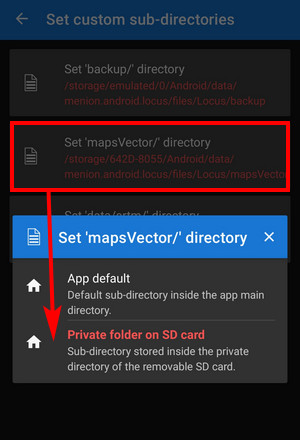 Linking of the maps from external directories is also no longer supported. The external maps can be used only within the default /Locus/Maps/ directory or in /Android/Media/menion.locus.android/Maps/ or /MapsVector/ directories. Both directories are available in the internal and external storages.