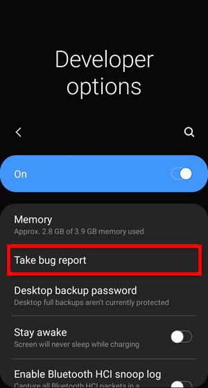 After tapping “Take bug report,” you are offered two types of reports - Interactive and Full. Select Interactive.