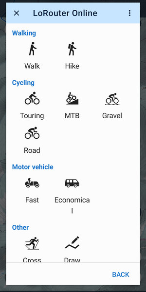 The offline version of LoRouter uses offline routing data. We strongly recommend downloading it in advance or you'll be prompted to download additionally while planning a route. You can download it either with the data downloader in settings > Navigation > Router