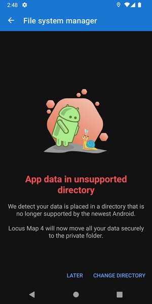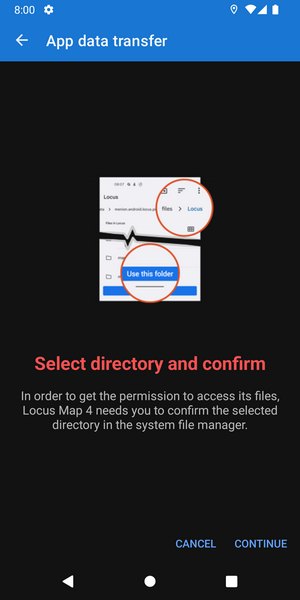 Locus needs to get permission to access its files - it's necessary to confirm the directory selected in the system file manager