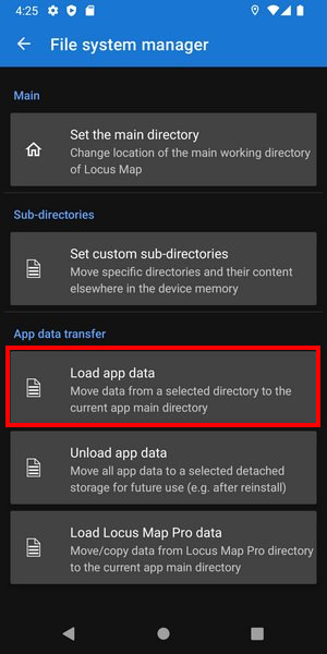 during the app initialization, you are notified of the app directory /Locus/ stored in the unsupported part of the internal storage: