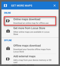 • Name of your downloaded map - in some cases Locus pre-fills this field with a near settlement name. When there is just “name of new map”, edit this field or you will be prompted later. It is not possible to proceed with download of a map without naming it.