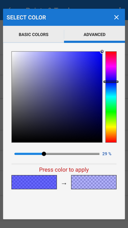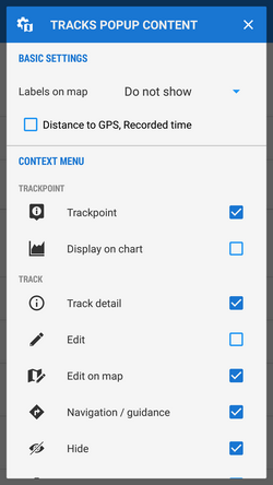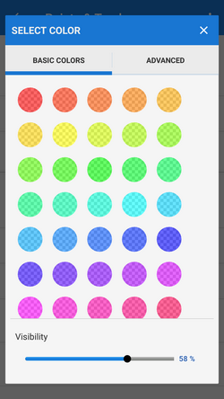 Basic setting of color and transparency of all tracks and routes globally for the whole app. There are two color selection modes - basic and advanced.